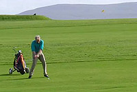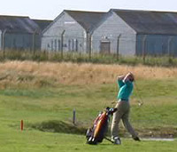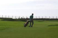 There was a hell of a crack. No Gary hadn't forgotten his belt again - his ball had collided with the yellow tee marker at the front of the tee. Then Ralph Stevenson-esque style it proceeded to fly backwards over Gary, over the tee, over the wall, over the road and over two pedestrians and onto the beach behind. Contact between ball and beach was not that however of a gentle plop into lapping water, nor even a plap into golden sand, more of a pwang off rock sending the ball 180 degrees back over the beach, over the same two pedestrians, over the road, over the wall and back onto the course to the side of the tee!