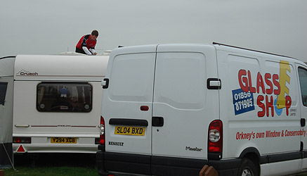 Lugsy, although not blessed with an accurate golf swing, is well endowed when it comes to hearing capabilities. He knew the loud bang was not that of a Pro V striking a tiled roof, it was more a 'caravanny' sound.
